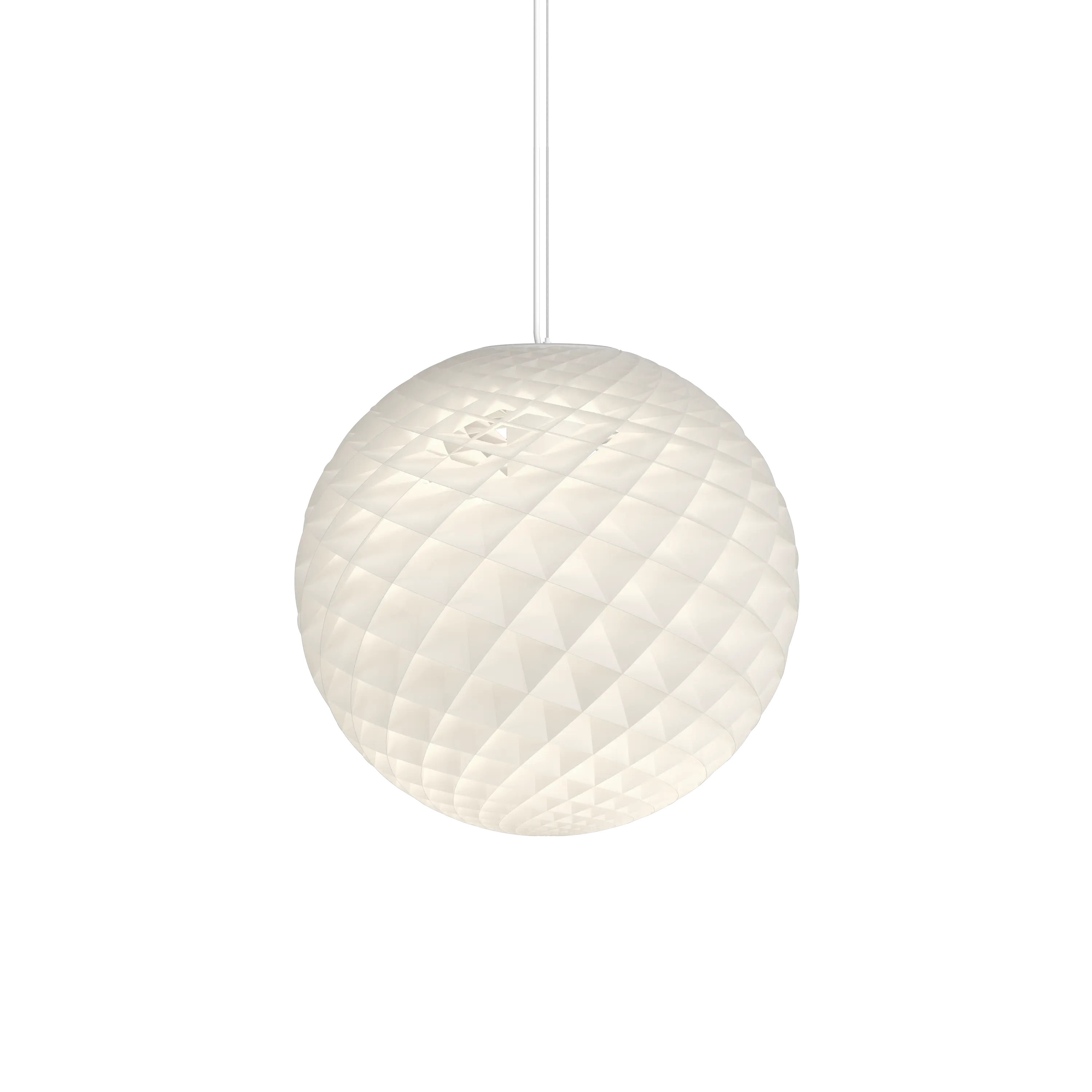 The Patera pendant was designed by Øivind Slaatto, who based it on the mathematics of the Fibonacci sequence. The poetic 360-degree glow of the Patera is derived from its many small diamond-shaped cells, which are assembled by hand. Each cell is meticulously designed to reflect light and delicately vary the appearance of the pendant from every angle. The brilliant mathematical structure allows the pendant to glow, free of glare, from every angle above 45 degrees while providing direct light below for ideal working light, depending on how the light is dimmed. At the same time, the design allows for a wonderful atmospheric upward light, illuminating the ceiling.