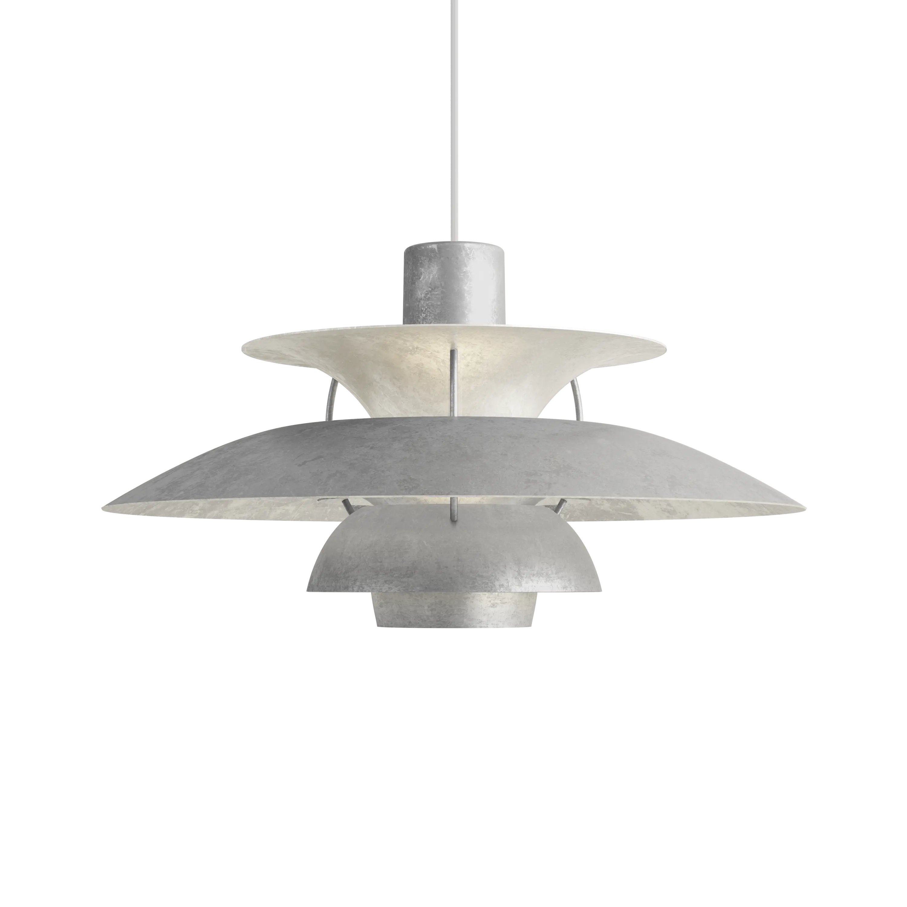 The transition process from a vintage or imperfect PH 5—for example, with a dent or slight surface irregularities—to a one-of-a-kind PH 5 Retake involves removing the paint from each pendant. This allows the aesthetics of the aluminium shades and the lower steel shade to emerge with remarkable raw nuances.