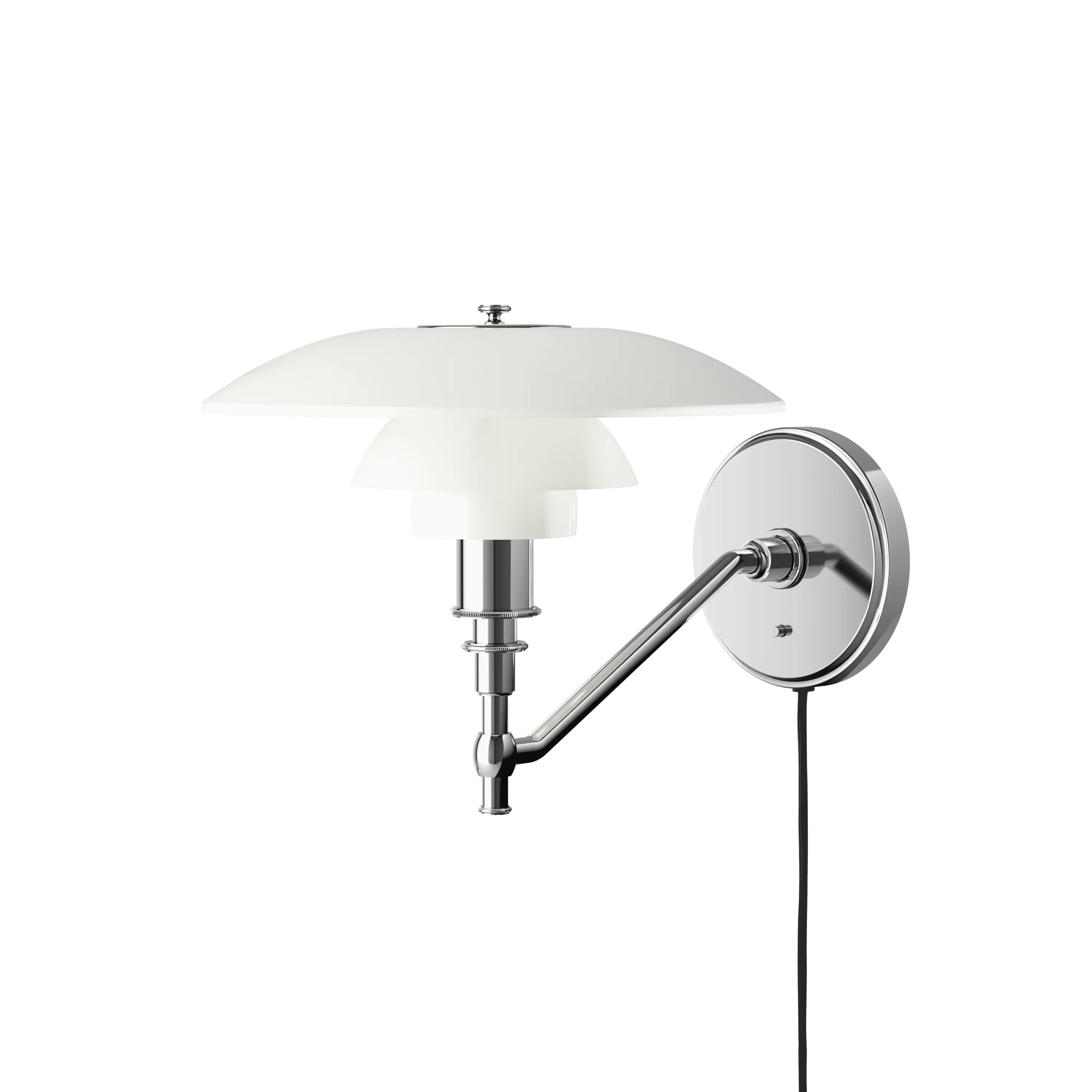 Poul Henningsen designed the three-shade system back in 1925-1926. The first lights using the system were designed by PH in cooperation with Louis Poulsen for an exhibition in Paris. This partnership continued up until his death in 1967. Throughout his life, PH sought to create glare-free light, direct light where it was most needed, and create soft shadows, using incandescent bulbs as a light source. PH 3/2 Wall is a member of the three-shade family which numbers 30 lights today, including three for outdoor use. Thus PH did not just design a light, but an entire system – around a thousand different models have been produced over the years. This wide selection consisted of table, floor and wall lamps, as well as a number of different chandeliers, which were very popular in the 30s for lighting private homes from high ceilings. There were countless combination options. The lights were available in different colours, as well as a range of sizes. The first shades were made of metal with a painted undersurface, such as white, gold or silver – depending on whether diffuse, warm or cold light was desired. Glass was later introduced for the three-shade system. In addition to the downward-directed light, glass lamps illuminated the room. PH was the first person to pursue a scientific approach to light and use the logarithmic spiral as a basis. By using a design based on the logarithmic spiral he achieved even distribution of light over the entire curve of the shade. This even light distribution, together with the diffuse reflection through the glass, made it possible to control glare and shadow. Each shade reduces the amount of light equally, due to their distance from the light source. The PH light model numbers refer to the shade size. Each top shade had a corresponding set of middle and lower shades. In the ‘pure’ models, such as the 2/2, the top shade has a size of about 20 cm, with corresponding lower shades. PH 3/2 Wall consists of an approximately 30 cm top shade, but uses lower shades from the 2/2 model. These ‘hybrid’ models were introduced due to the desire to hang pendants at lower heights. The system was also used for wall, floor and table lamps.